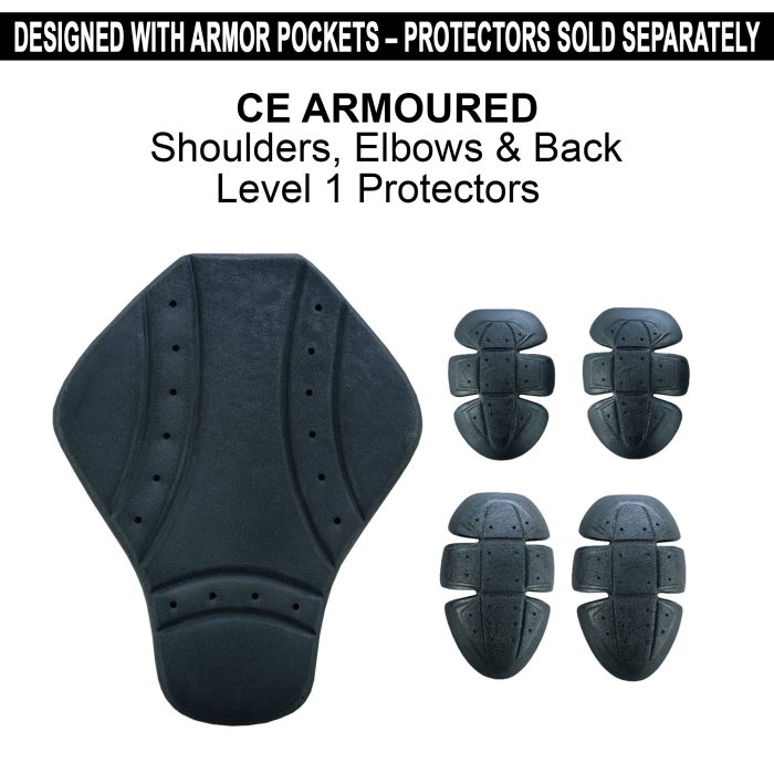 Designed with Built-In Armor Pockets – Jacket includes dedicated compartments for CE protectors at the back, shoulders, and elbows (pads sold separately)