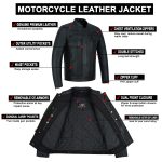 Men’s Motorcycle Black Leather Jacket With CE Approved Level 1 Armor – Classic Biker Style, Zipper Closure & Protective Slim Fit Design