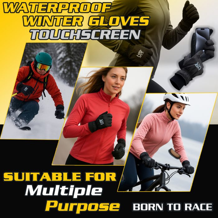 Men’s & Women’s Waterproof Winter Gloves – Touch Screen, Thinsulate Insulation, Windproof, Non-Slip Grippy Palm, Ideal for Cycling, Motorcycle, Hiking & Skiing | All-Weather Thermal Gloves